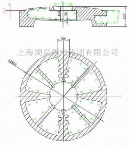 一、大型電動蝶閥結構分析 (1)此蝶閥屬園餅形結構,內部空腔由8根加強筋連接支撐,頂部620孔與內腔相通,其余部分均為封閉形狀,砂...